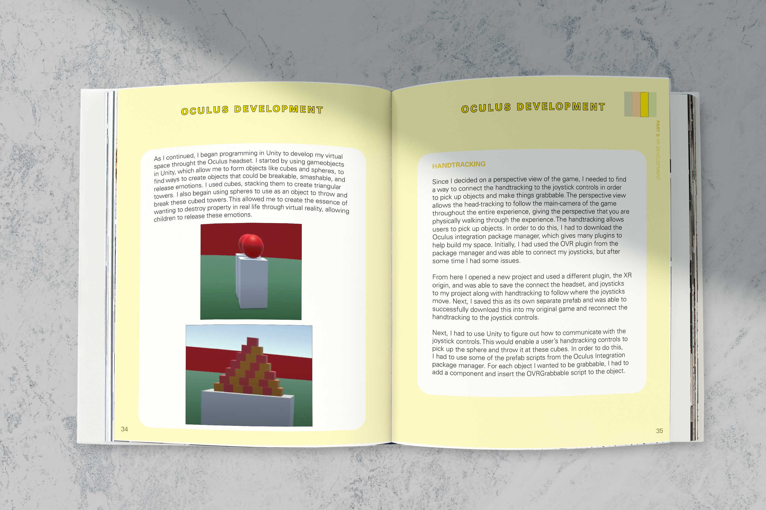 My value in humans and technology has led me to understand that the true design I enjoy creating is tailored toward helping make a difference, triggering me to develop the Room of Regulation made for children with Autism Spectrum Disorder (ASD) for my thesis project. The Room of Regulation is a virtual reality safe space, that helps children with Autism cope with their emotions. Communication is a huge barrier that many autistic children deal with on a daily basis. Due to the communicational breakdown, a common way of coping is through the physical destruction of property.